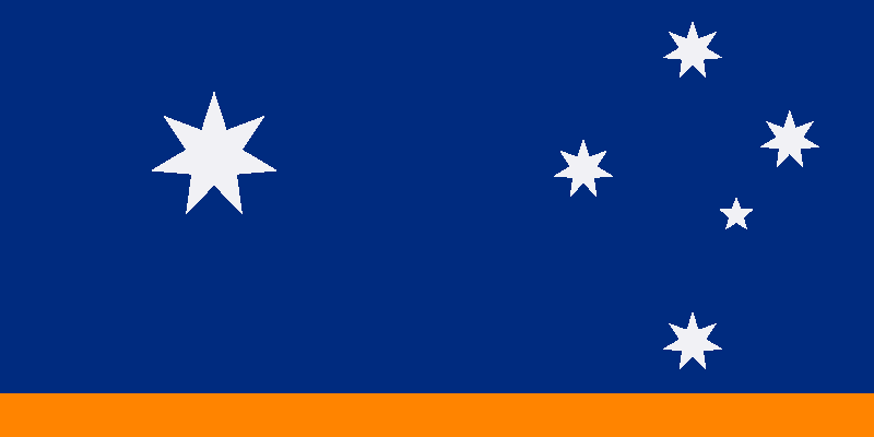| Now we're getting somewhere. The land plus the Southern Cross has given some strikingly simple designs, such as those above, which have done consistently well in Ausflag's competitions. Still, it's a pity to remove the Federation Star. Can't we take the process one step further and keep both the Southern Cross and the Federation Star, with the land taking the place of the Union Jack? | |||
